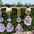Аметист это камень спокойствия, умиротворенности, возвышенности, любви. Здесь крупный (но лёгкий), прозрачный, удивительный, многогранный лавандовый аметист неодинаковой формы и «неидеальной» шлифовки, приближённый к естественности, который таит в одной из бусин ангельское сияние внутри: радуга, рождённая из глубины, которая особенно проявляется на солнце.
