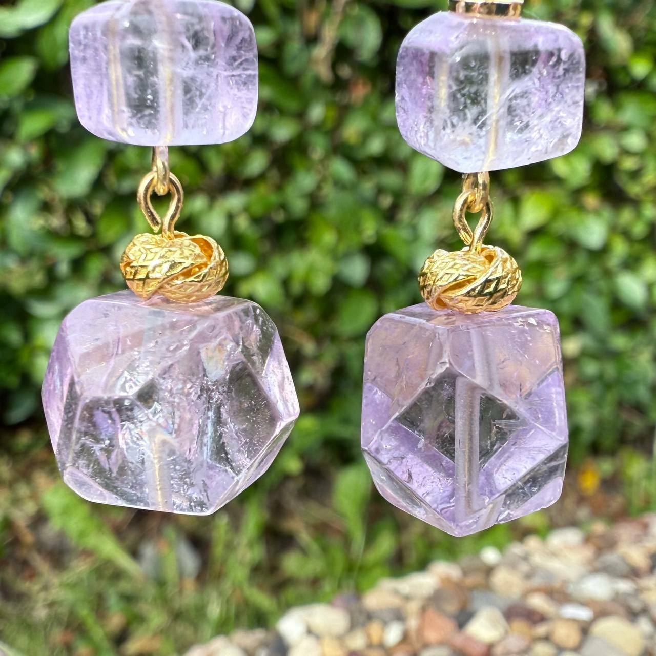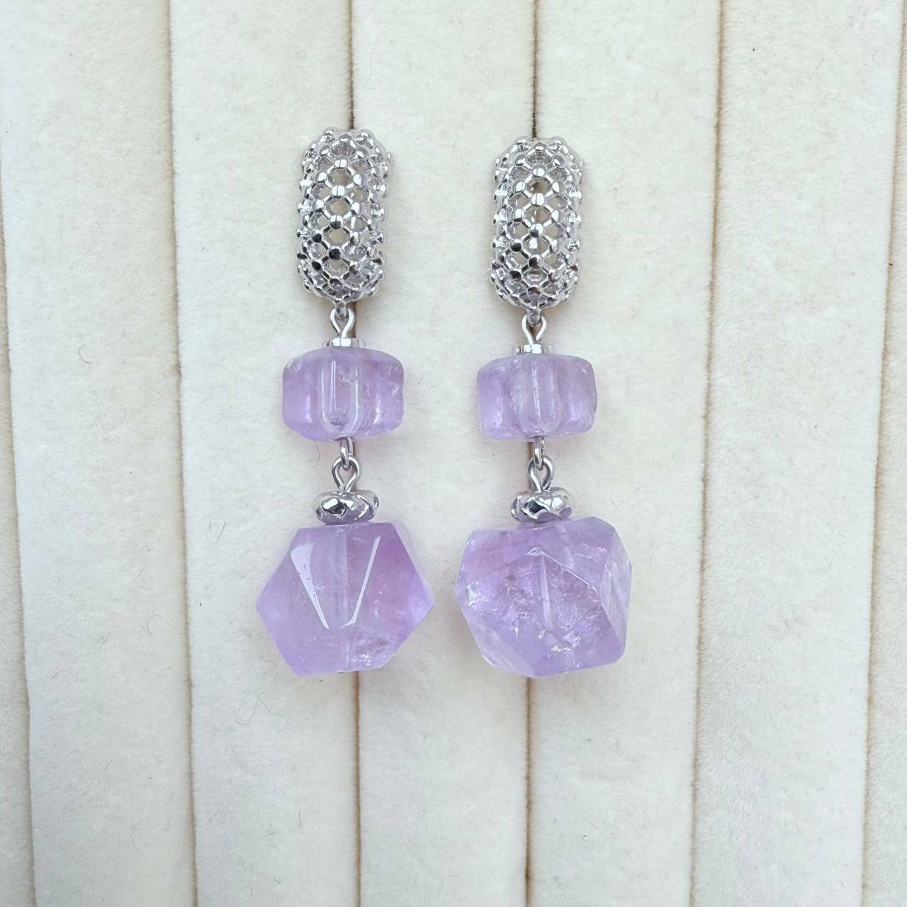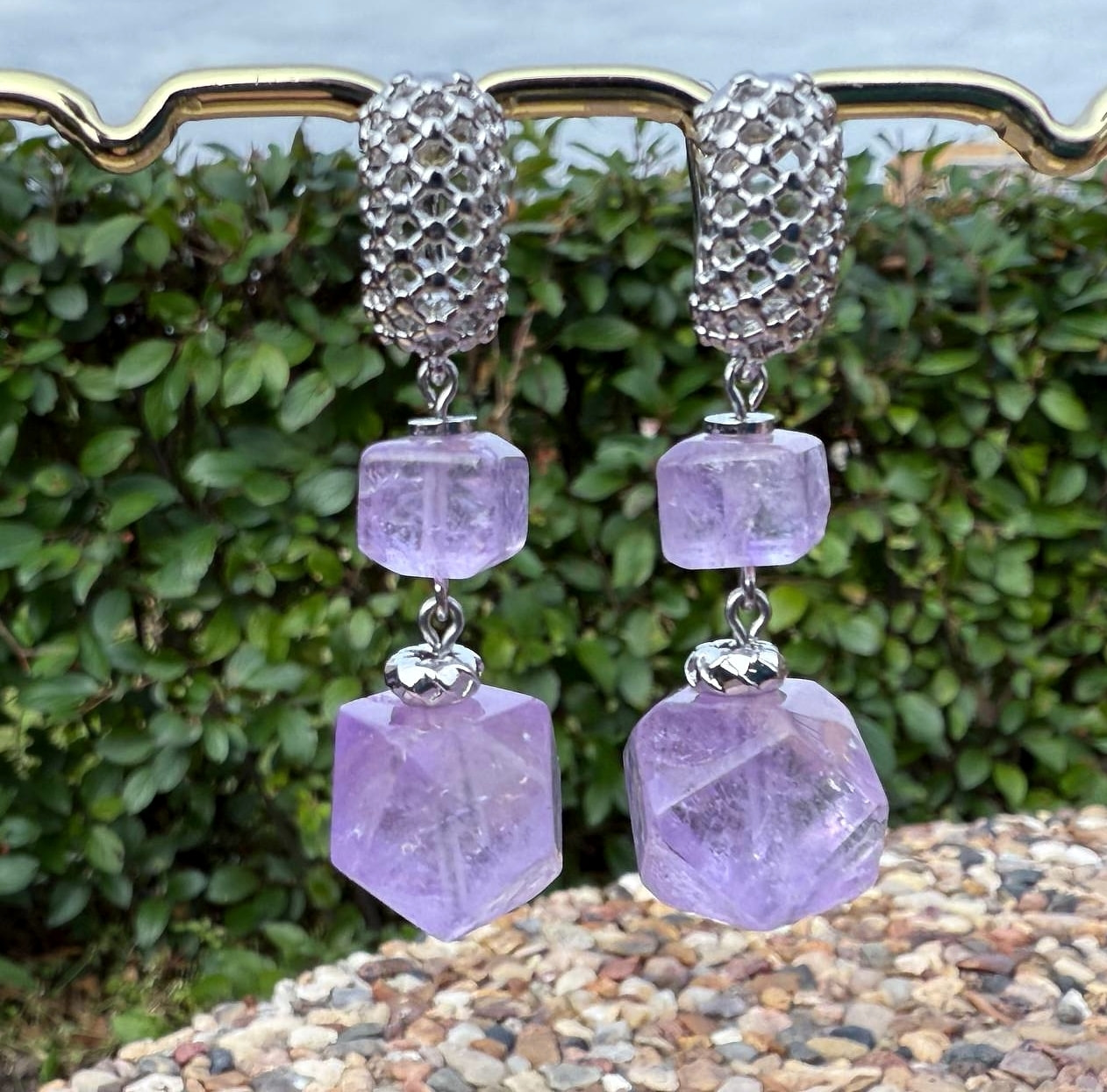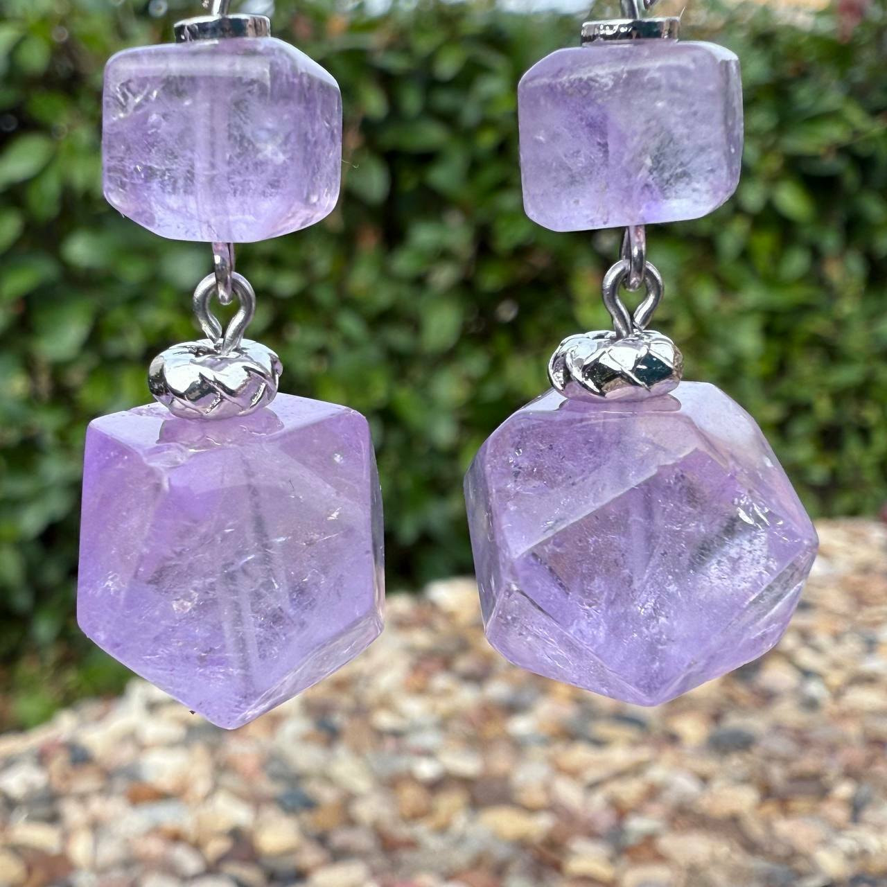 Серьги с натуральным лавандовым аметистом 2 форм - многогранной бусиной и кубиком.