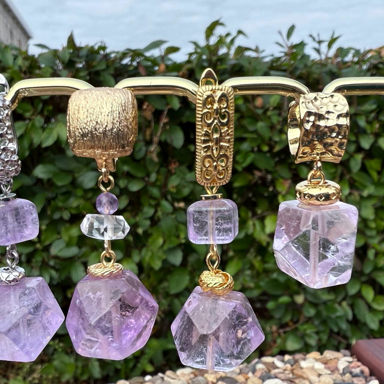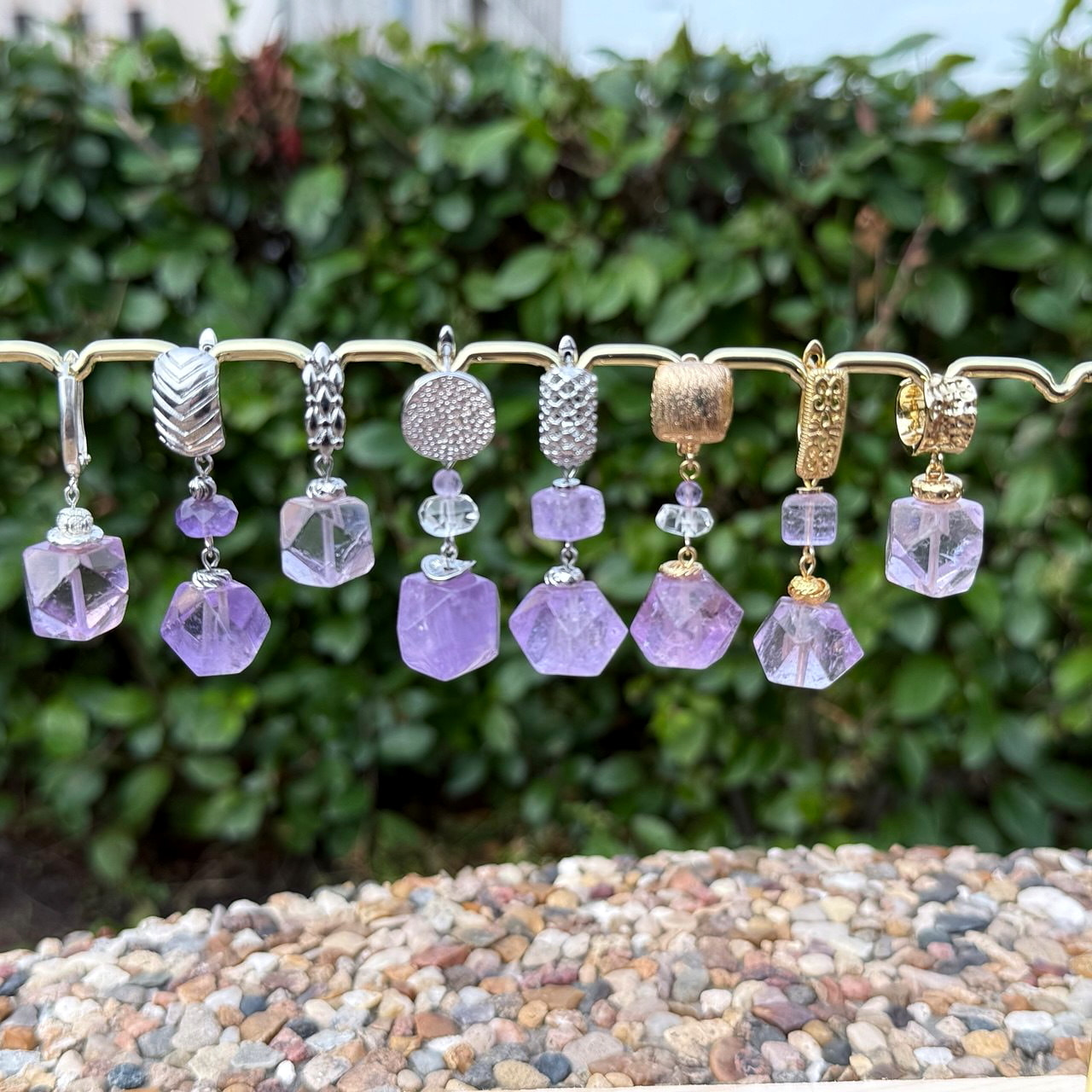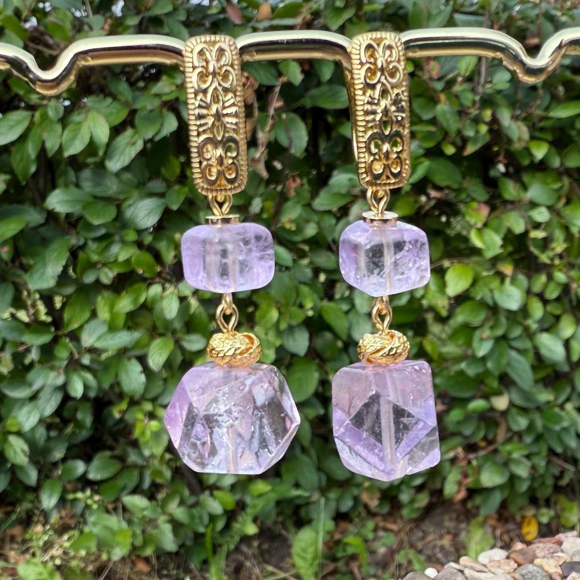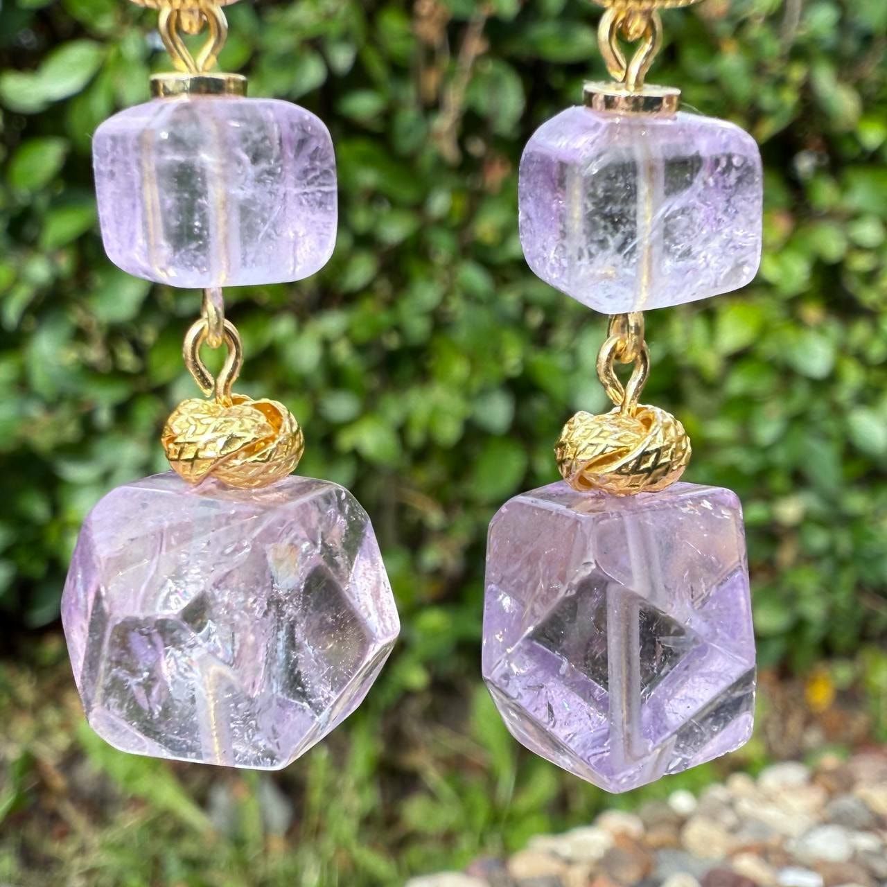 Серьги с натуральным лавандовым аметистом 2 форм - многогранной бусиной и кубиком.