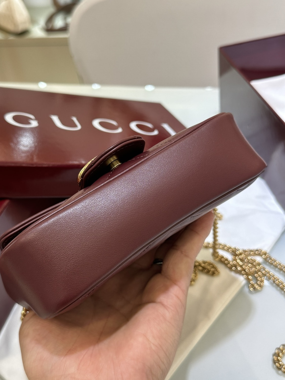 Сумка женская из натуральной кожи бордовая GUССI