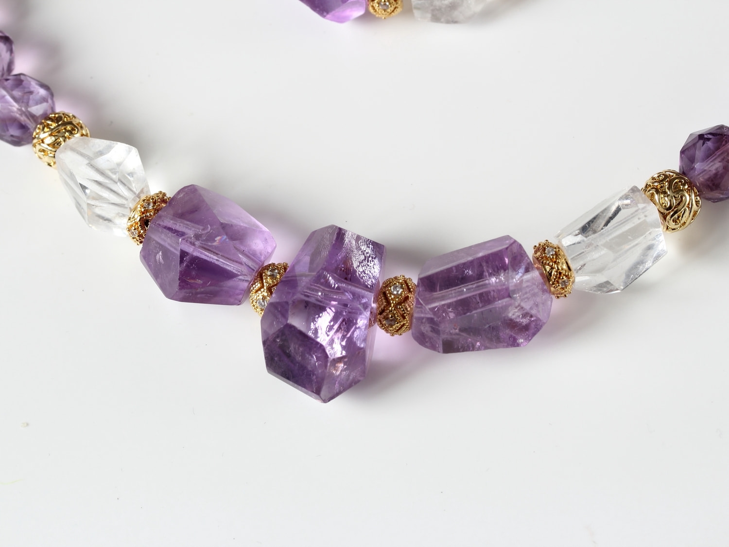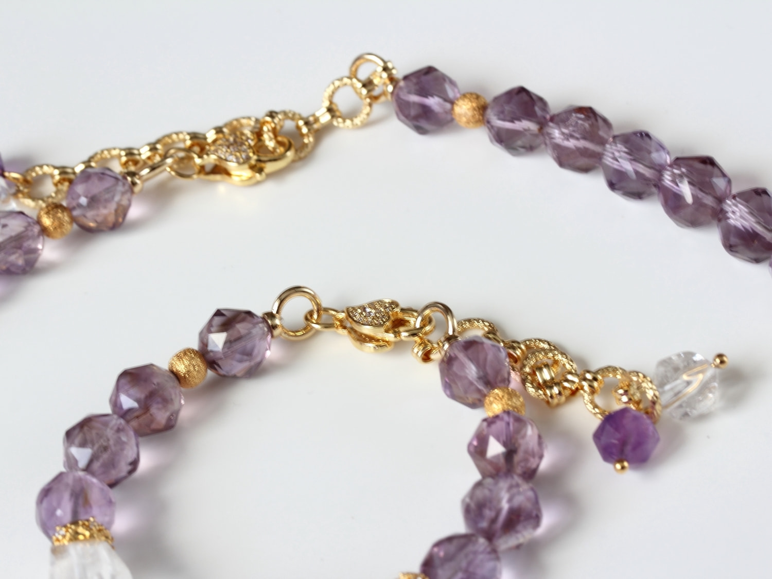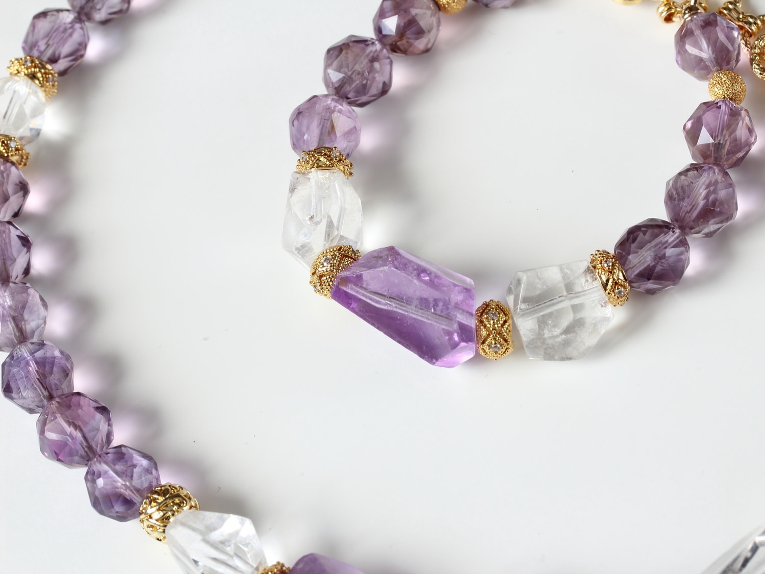 Комплект украшений из аметрина, аметиста и горного хрусталя премиального качества