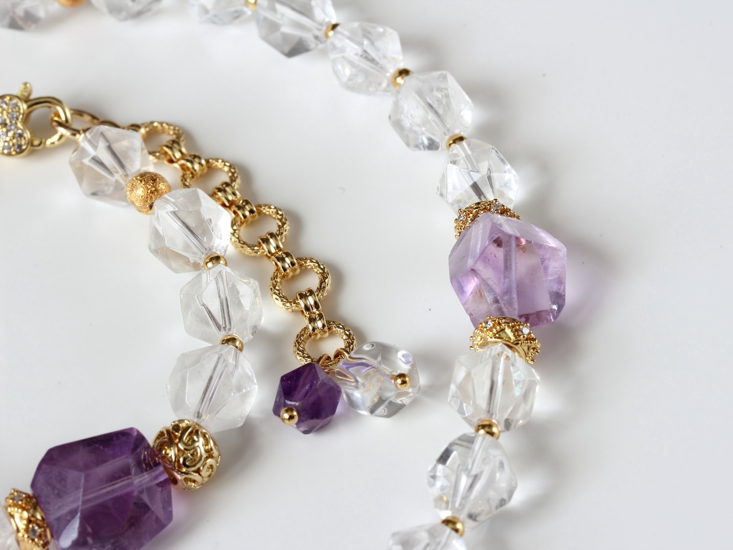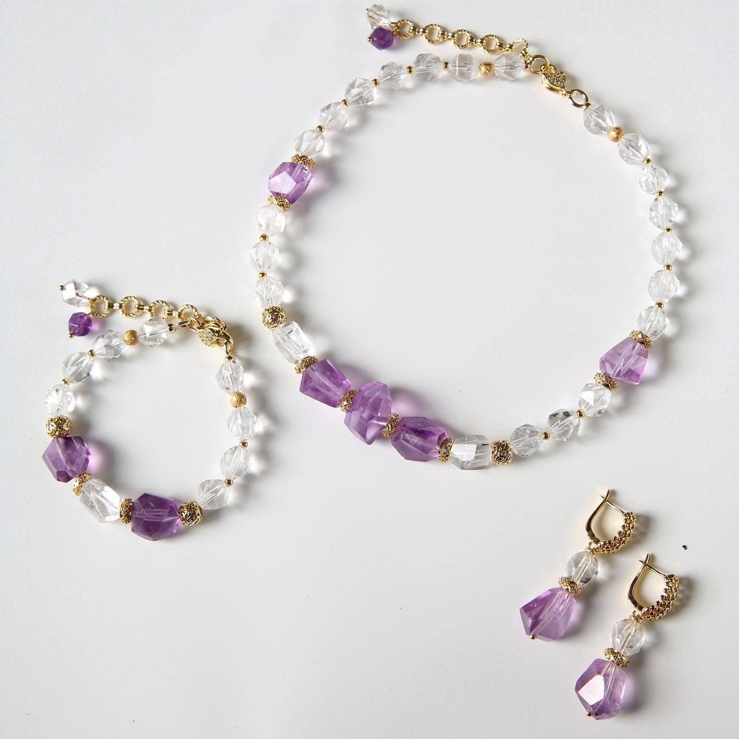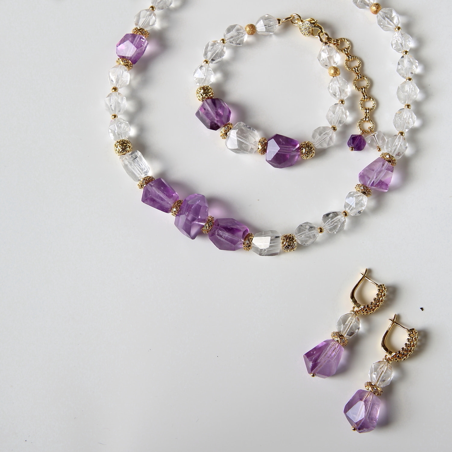 Комплект украшений из премиального аметрина, аметиста и горного хрусталя