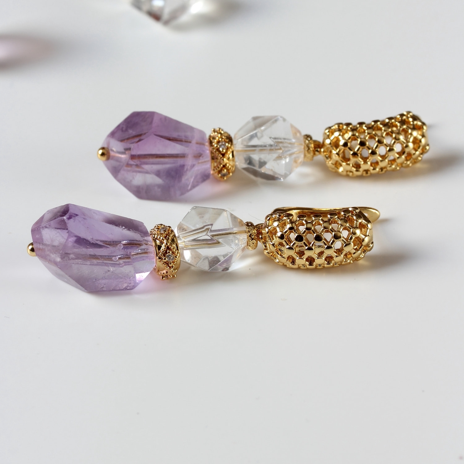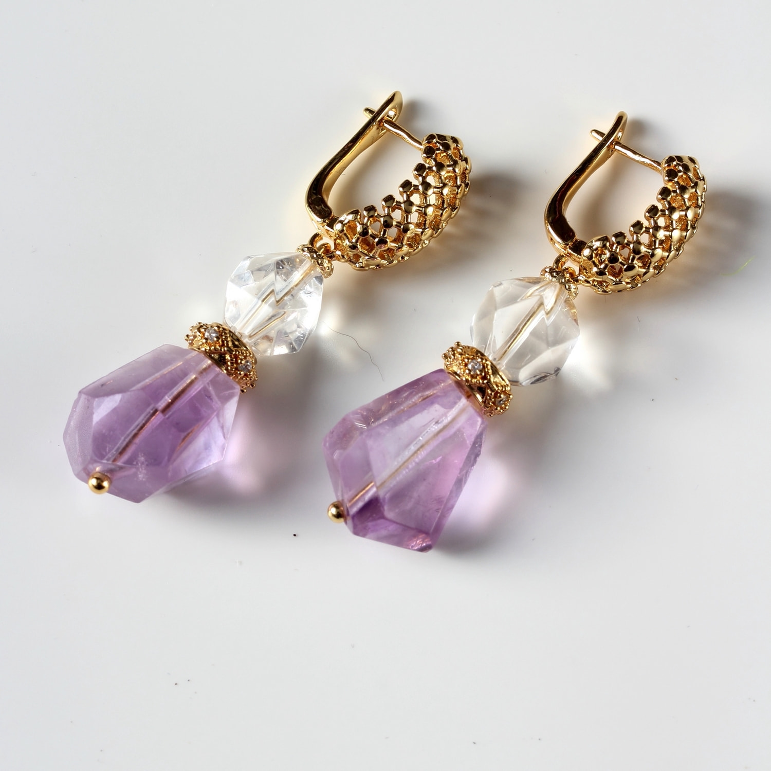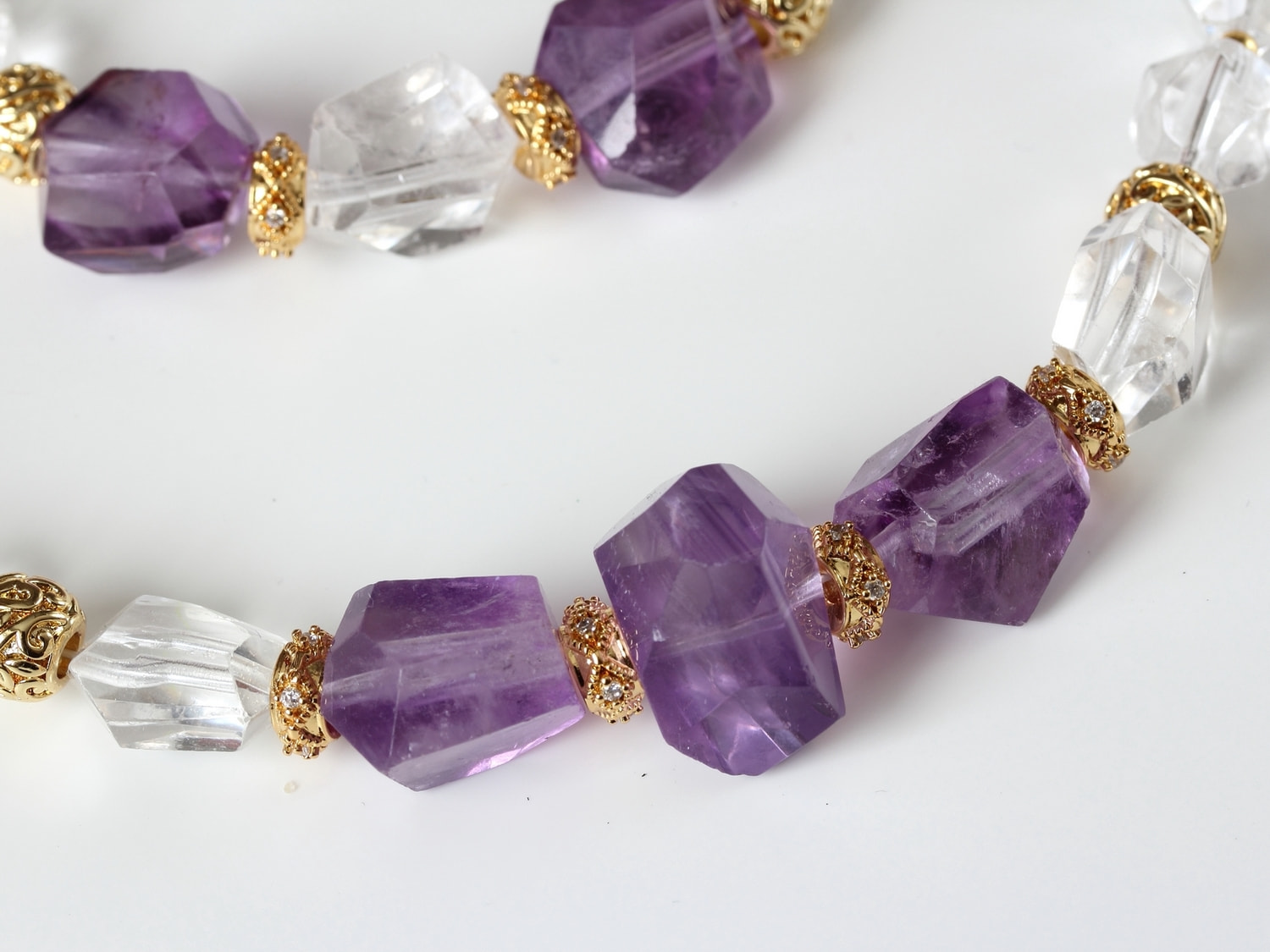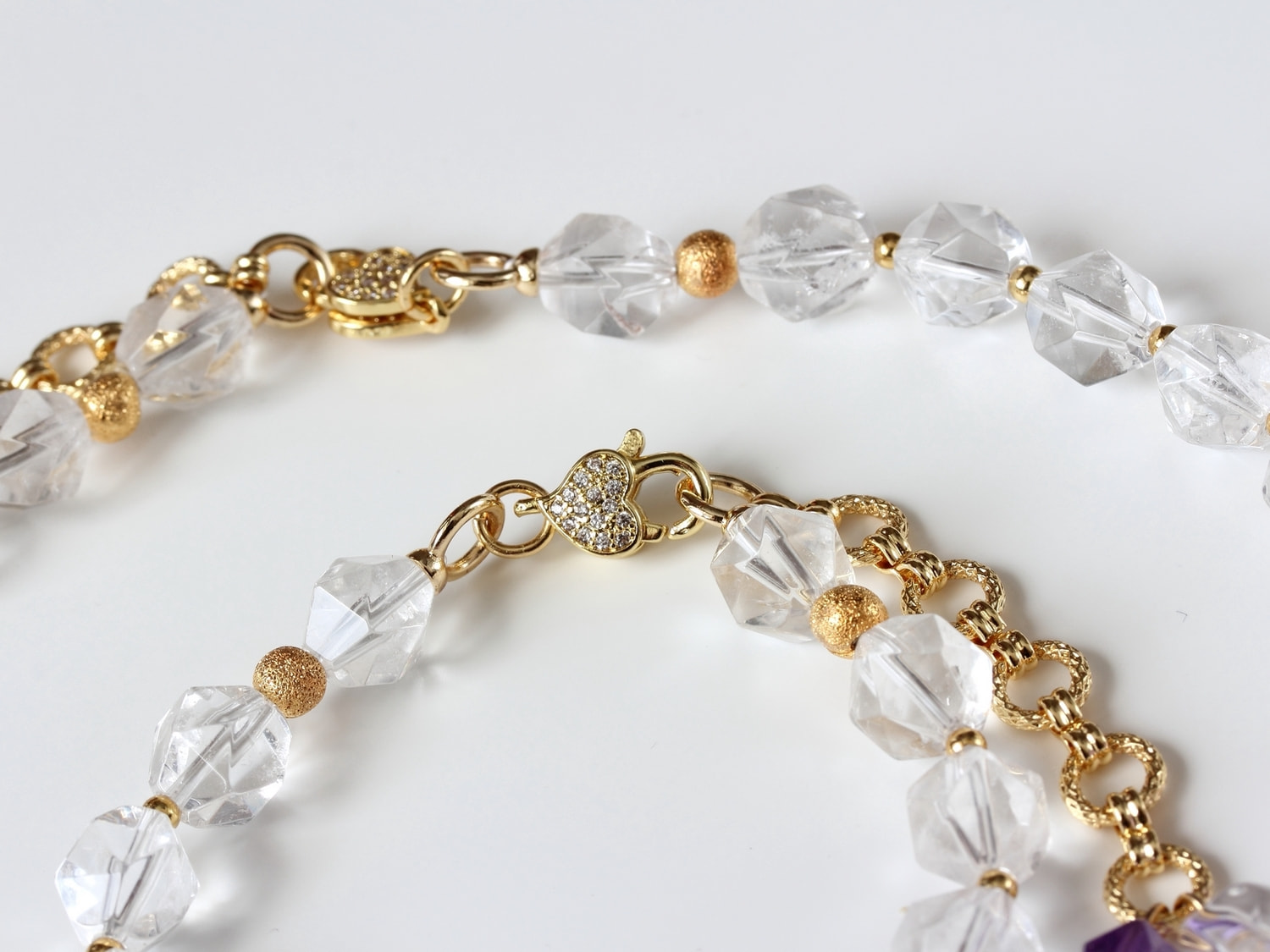 Комплект украшений из премиального аметрина, аметиста и горного хрусталя