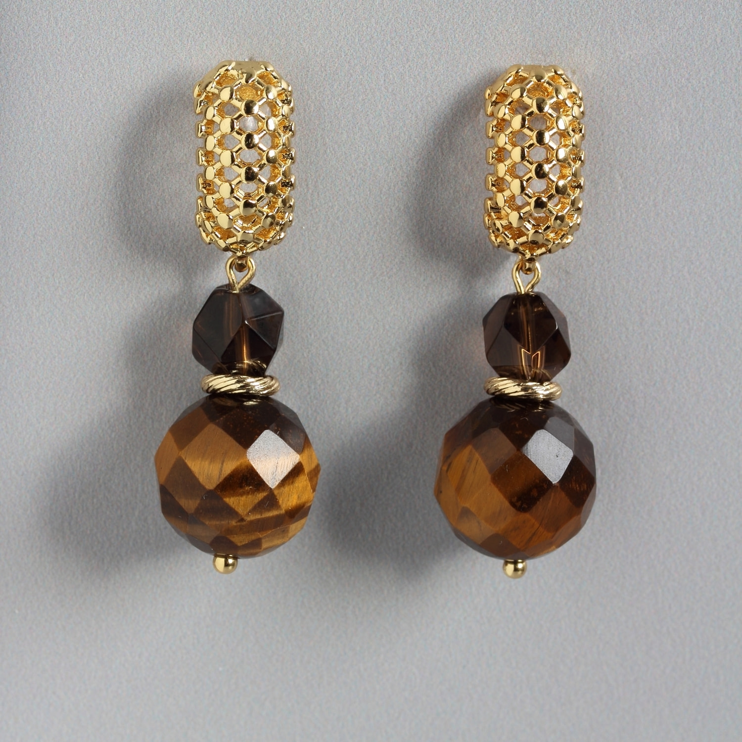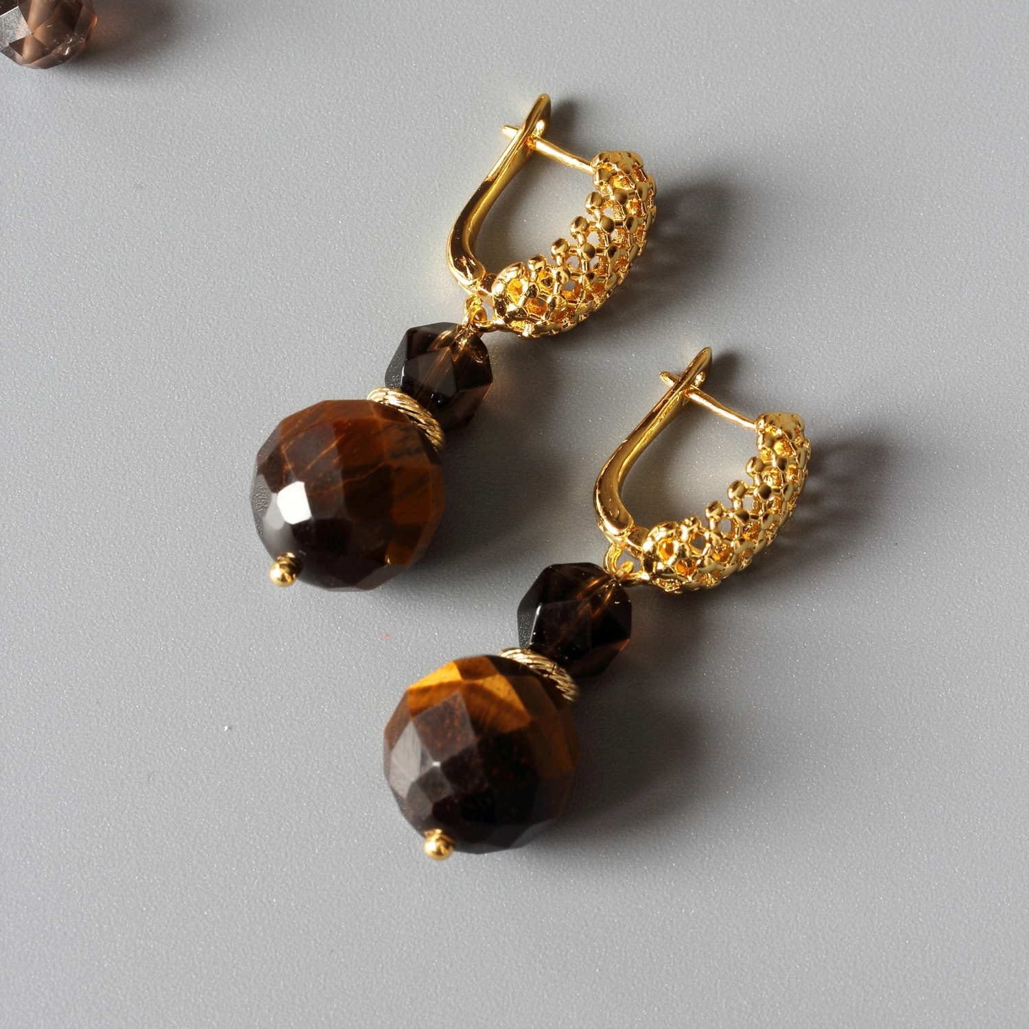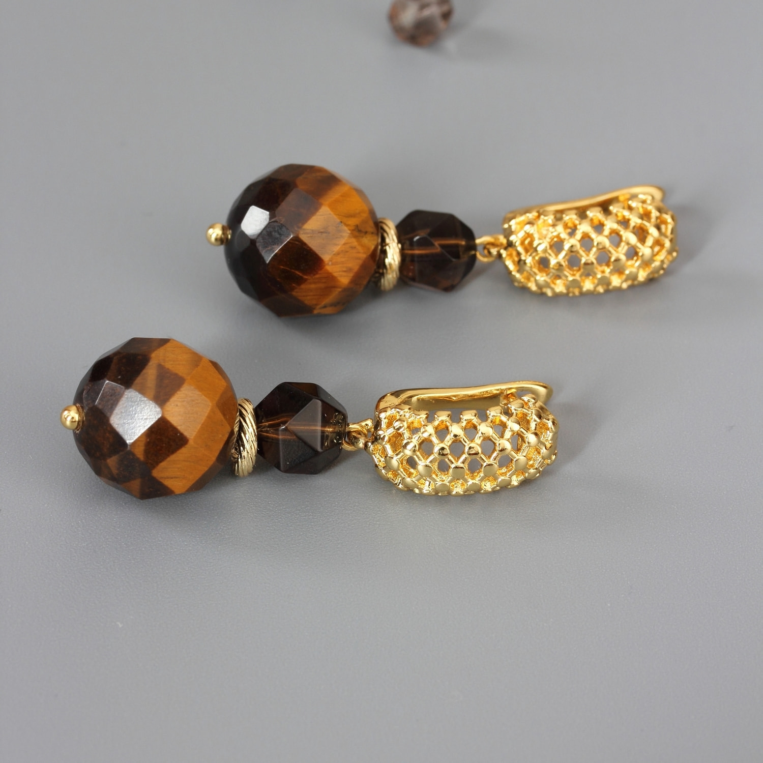 Лёгкие серьги женские из натурального тигрового глаза и раухтопаза (дымчатого кварца).