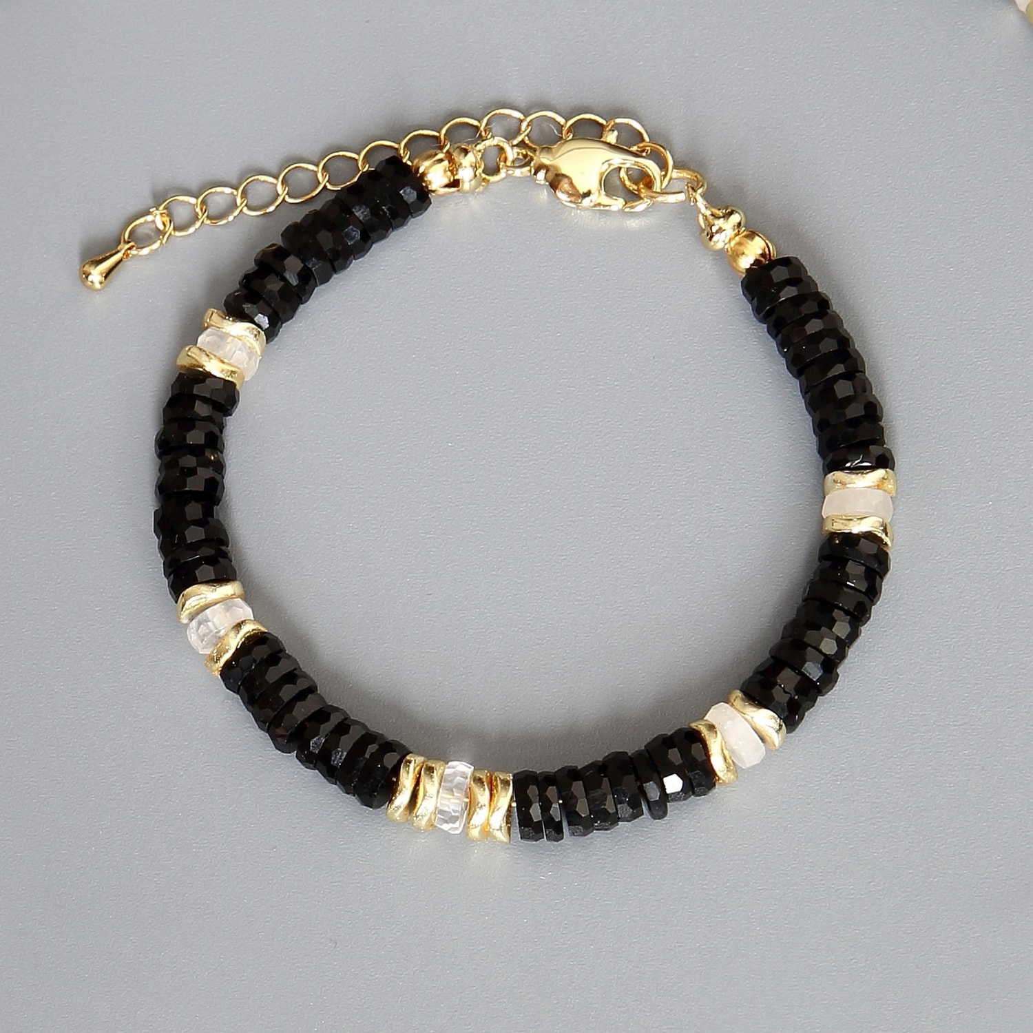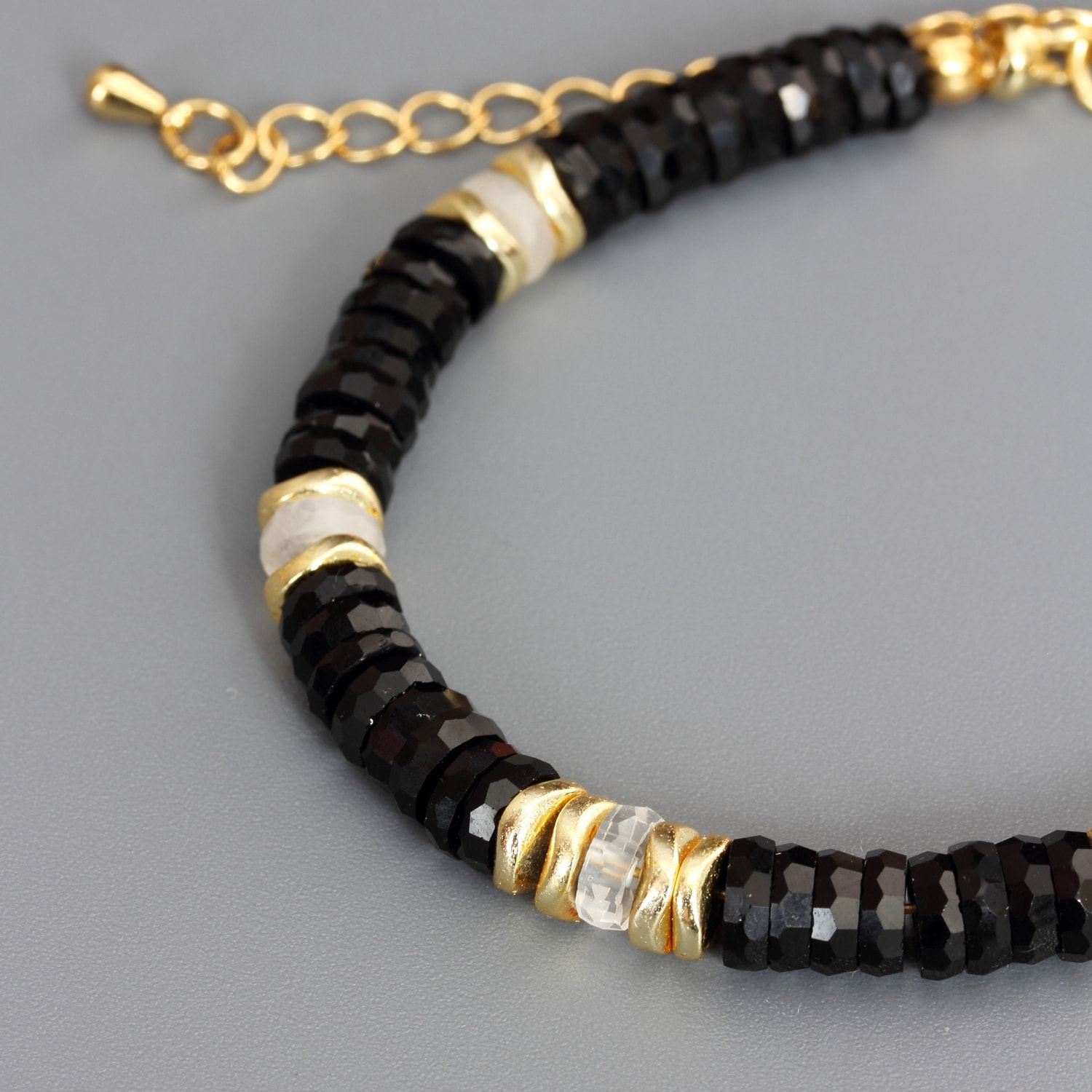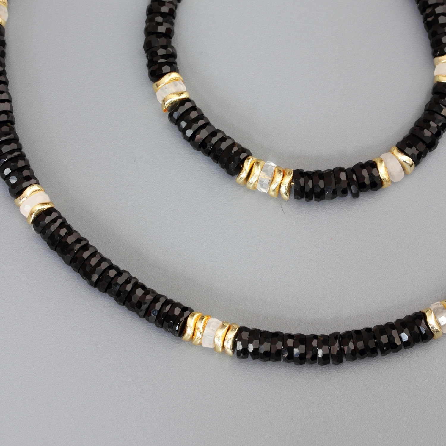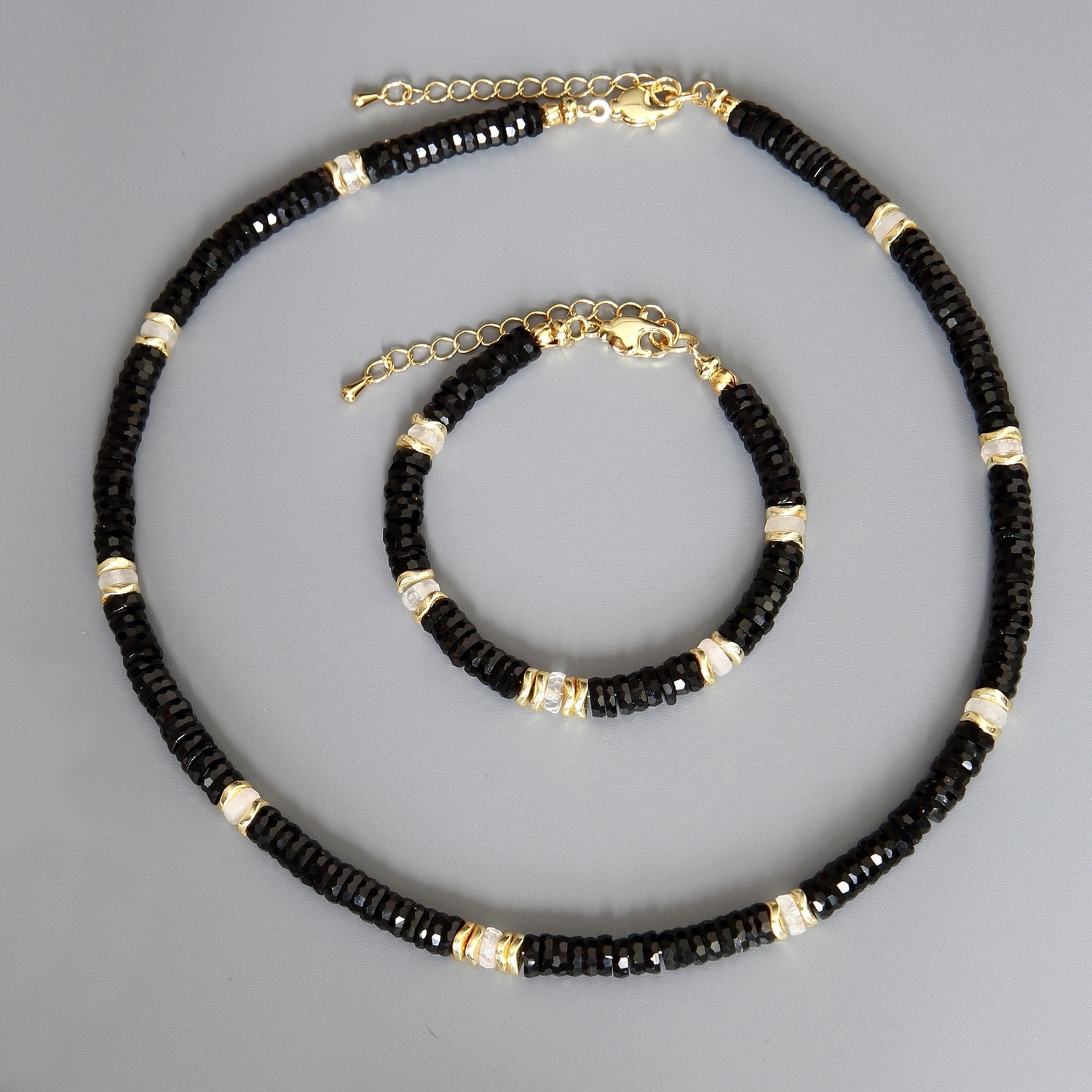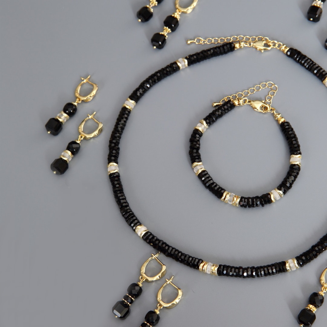 Чокер, браслет и серьги из чёрного агата и горного хрусталя