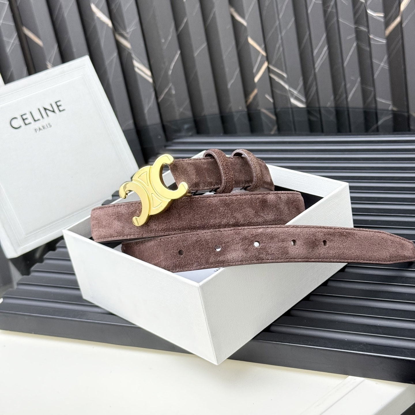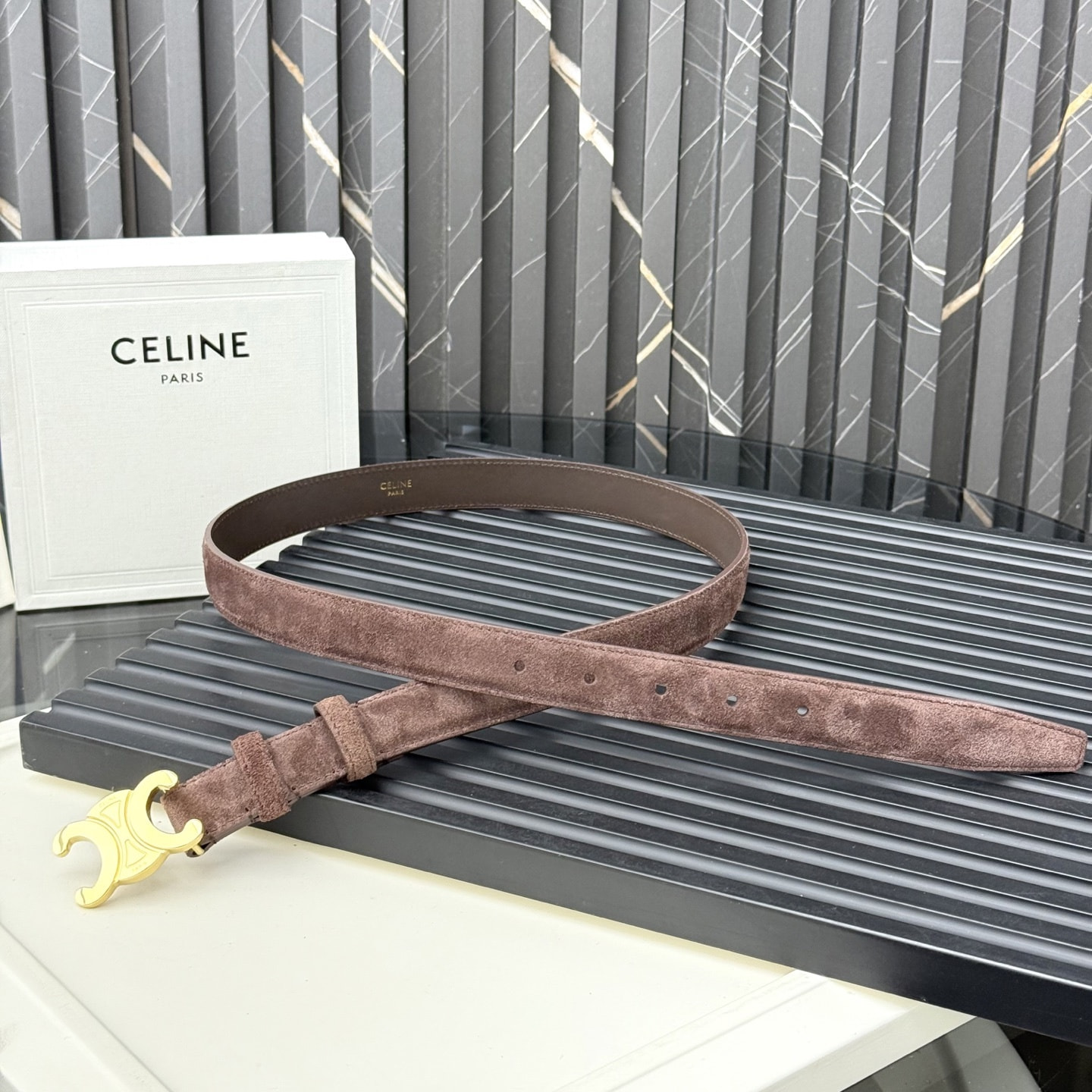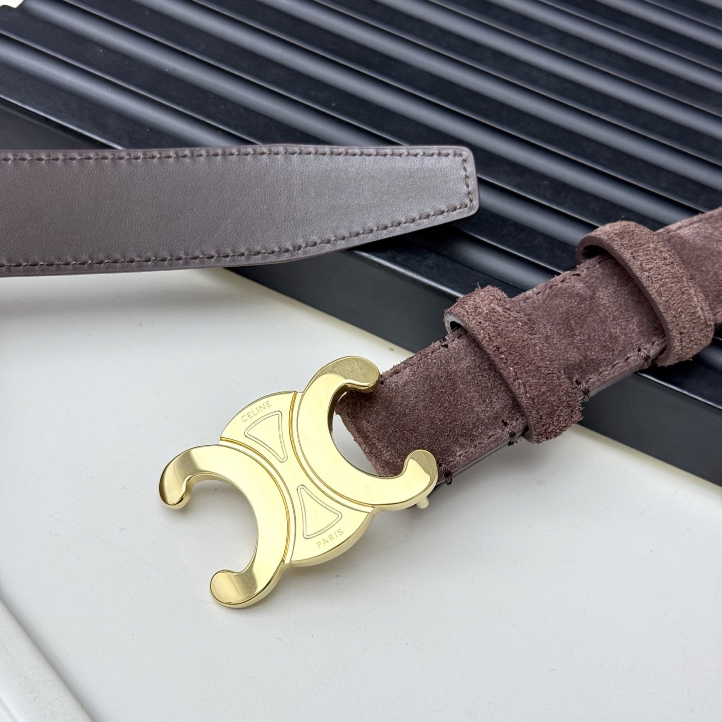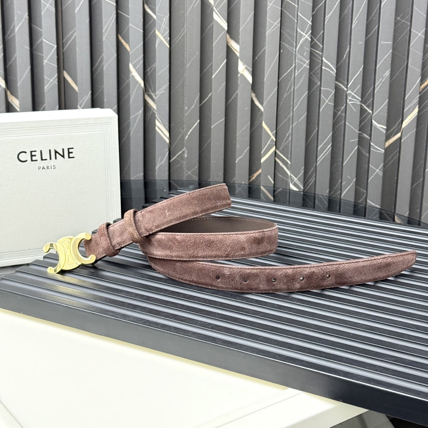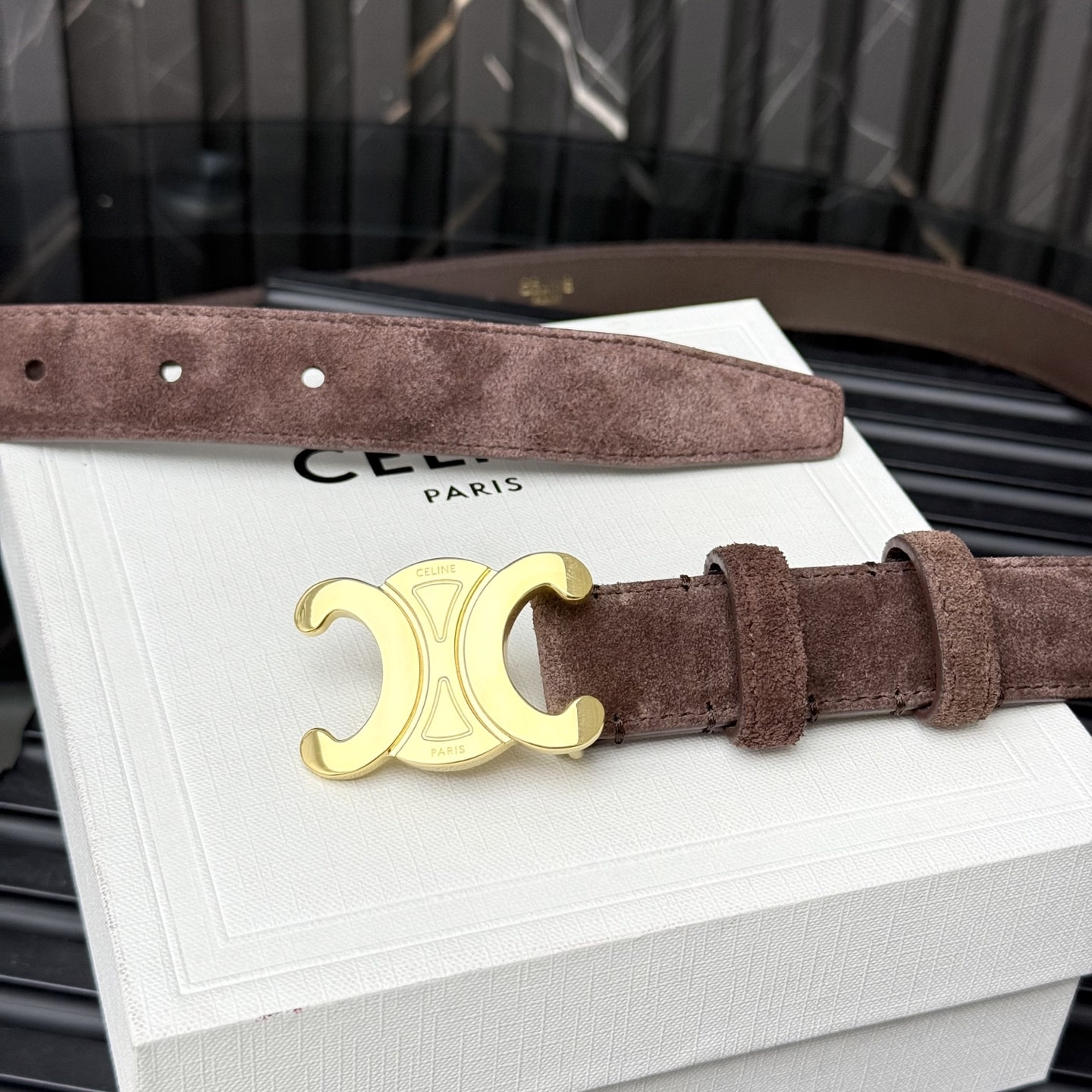 Ремень кожаный замшевый коричневый СЕLINЕ triomphe