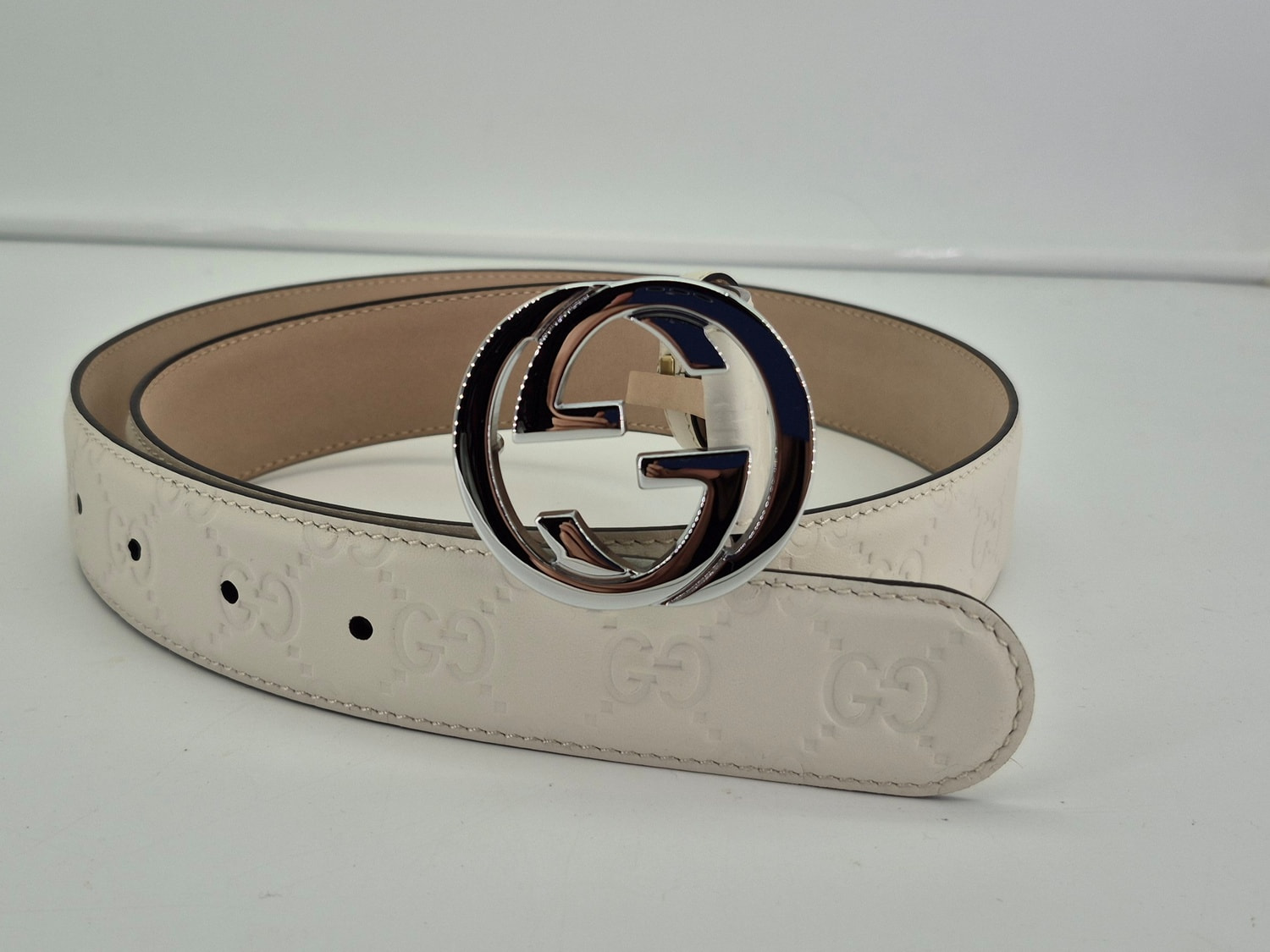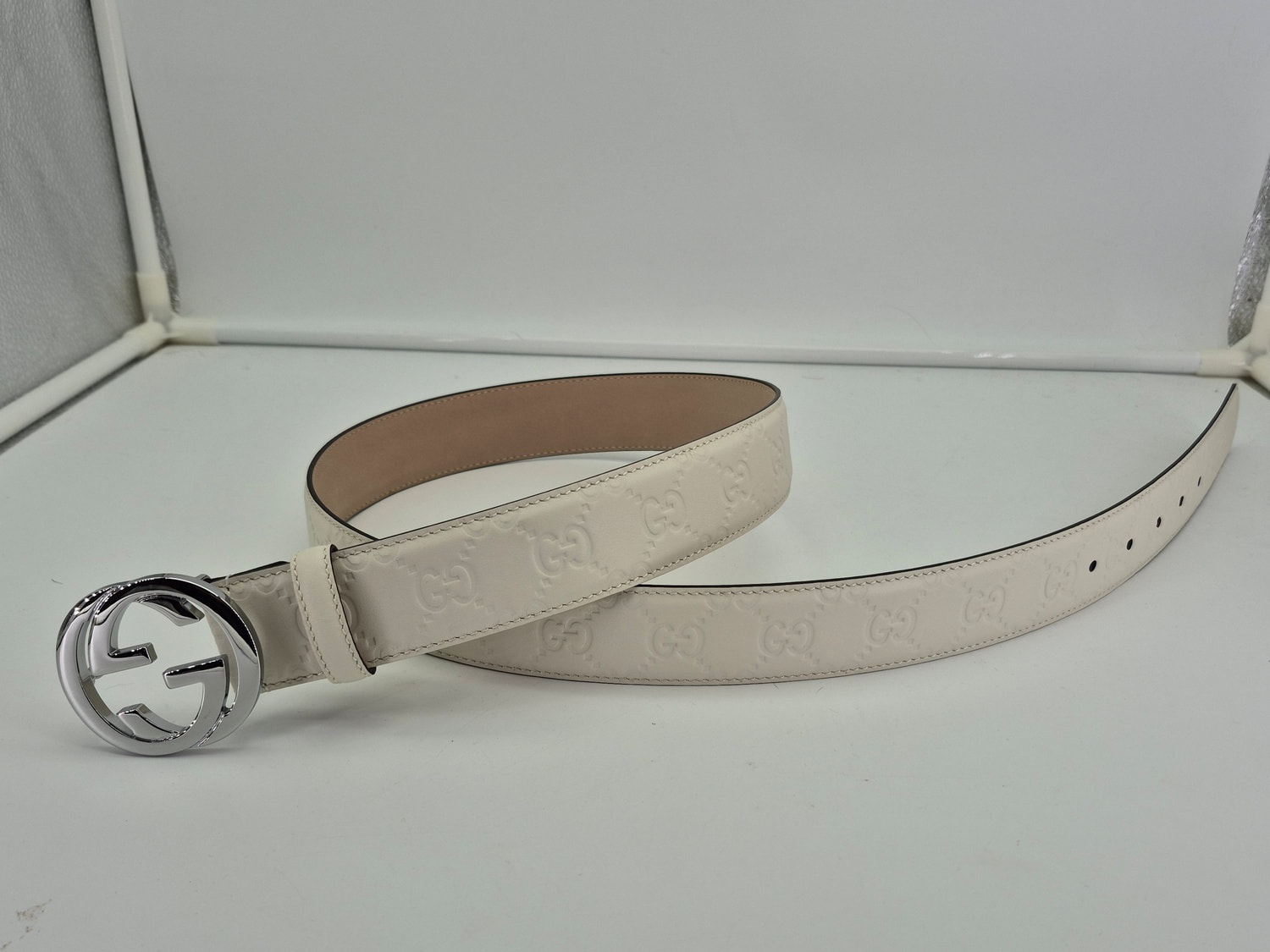 Ремень из натуральной кожи белый GUССI